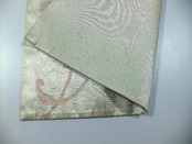 帯としての使用感は殆どなく美品で贈り物にも最適です。銀糸地に淡い色合いの鳥や御所車、花の吉祥文様です。